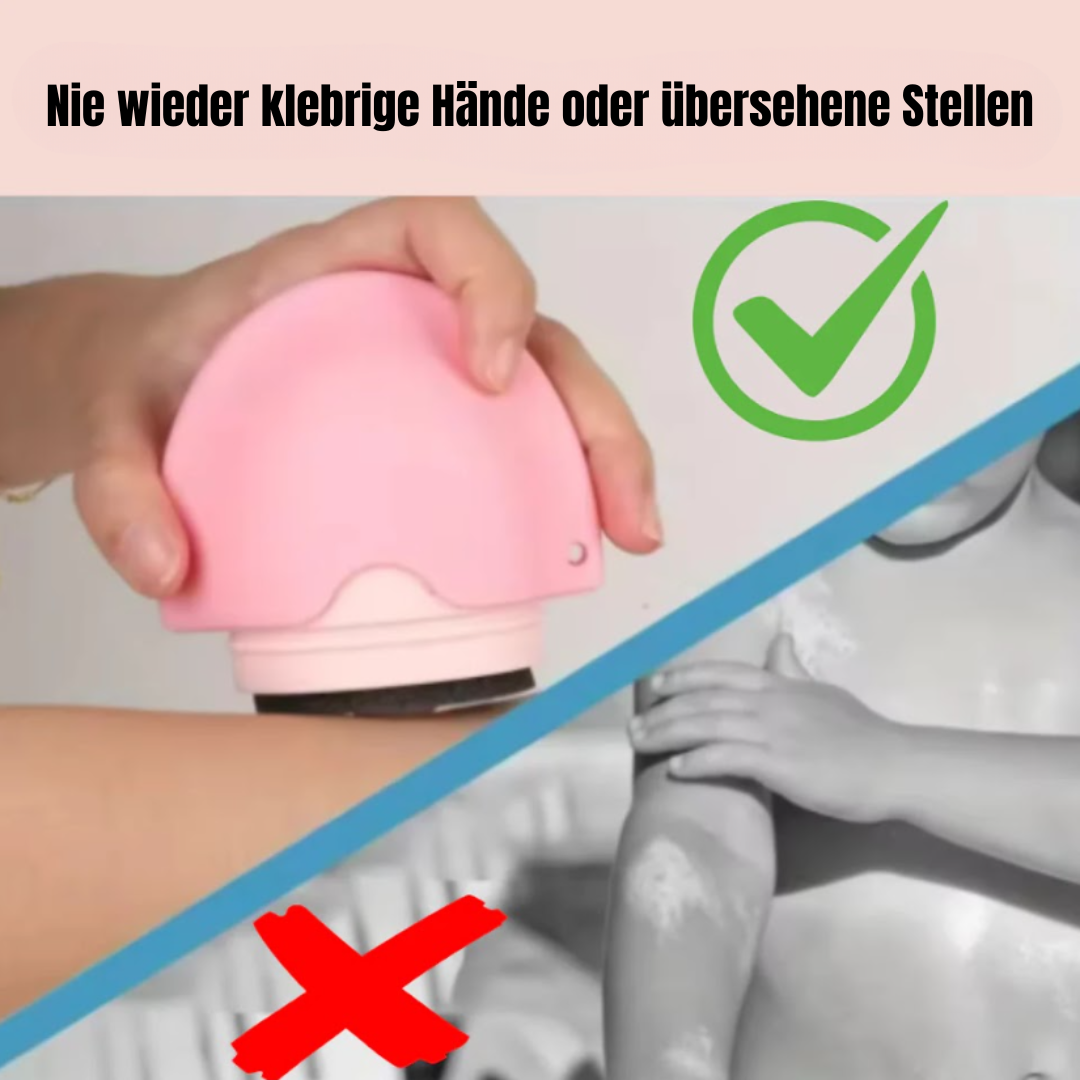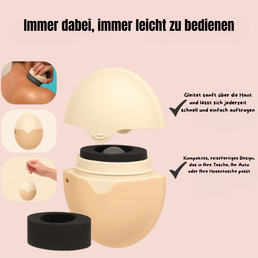 Die Silikonrolle passt sich der Haut an und verteilt die Creme optimal – ohne Verreiben, ohne weiße Streifen, ohne Klümpchen. Auch bei empfindlicher Haut sanft und angenehm.